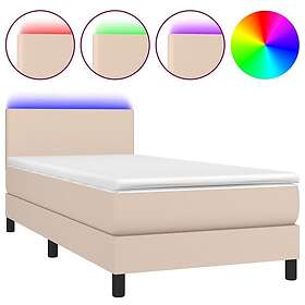 vidaXL Ramsäng med bäddmadrass & LED cappuccino 80x200 cm konstläder