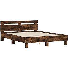 vidaXL Sängram med huvudgavel och LED rökfärgad ek 140x200 cm