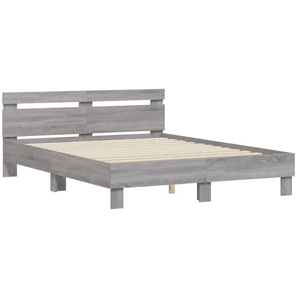 vidaXL Sängram med huvudgavel och LED grå sonoma 140x190 cm