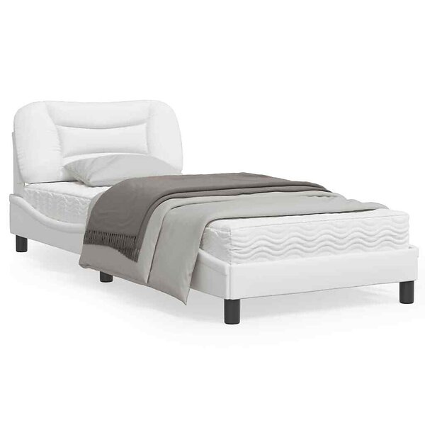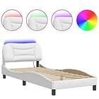 vidaXL Sängram med LED-belysning vit 90x200 cm konstläder