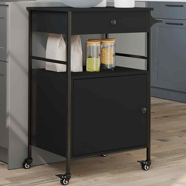 vidaXL Køkkenvogn sort 56x43x89,5cm konstrueret træ
