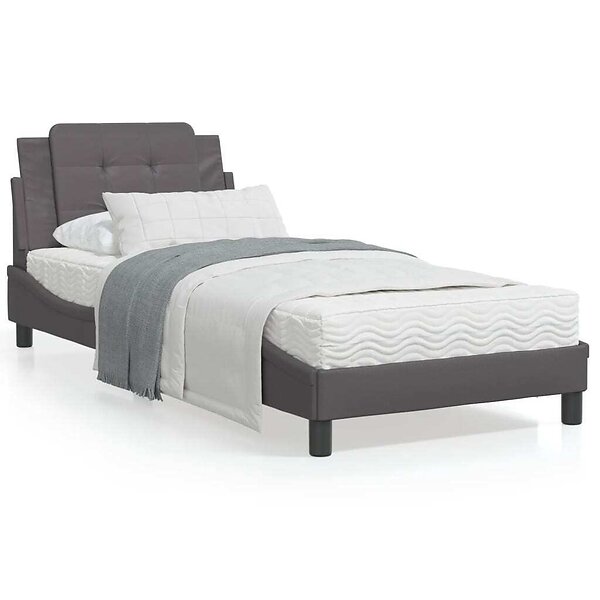 vidaXL Sängram med huvudgavel grå 100x200 cm konstläder