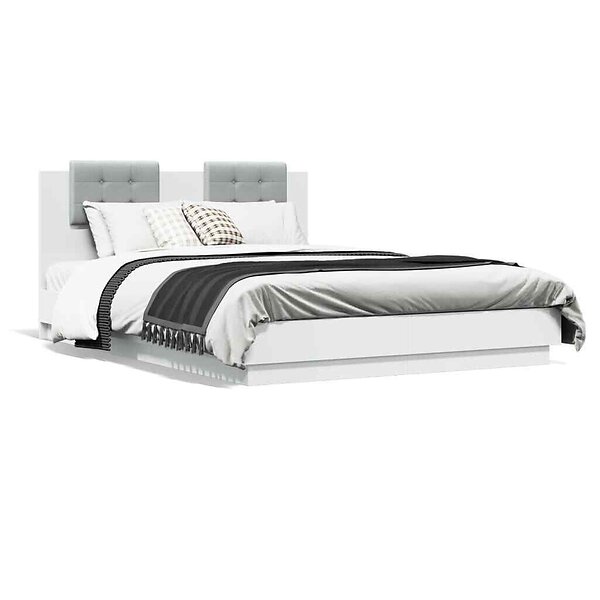 vidaXL Sängram med huvudgavel vit 140x200 cm konstruerat trä