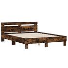 vidaXL Sängram med huvudgavel och LED rökfärgad ek 140x190 cm