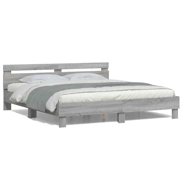 vidaXL Sengeramme med hovedgærde og LED grå sonoma 200x200 cm