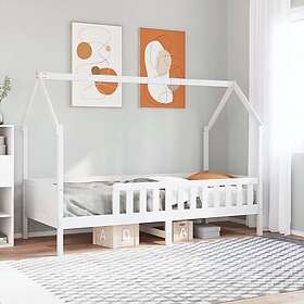 vidaXL Barnsäng med husram vit 90x190 cm massiv furu