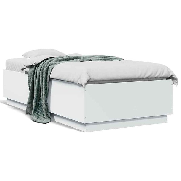 vidaXL Sängram med LEDs vit 75x190 cm konstruerad trä