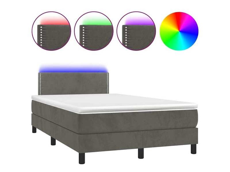 vidaXL Ramsäng med madrass & LED mörkgrå 120x190 cm sammet