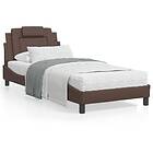 vidaXL Sängram med LED-belysning brun 90x200 cm konstläder