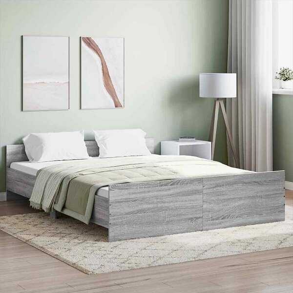 vidaXL Sängram med huvudgavel och fotgavel grå sonoma 160x200 cm