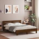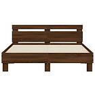 vidaXL Sängram med huvudgavel och LED brun ek 150x200 cm