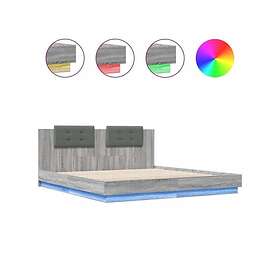 vidaXL Sängram med huvudgavel och LEDs grå sonoma 160x200 cm