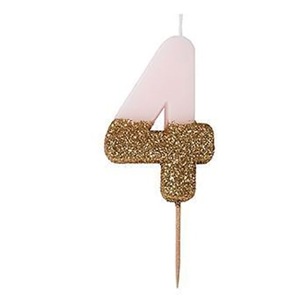 Tårtljus Siffra Ljusrosa/Guldglitter Siffra 4
