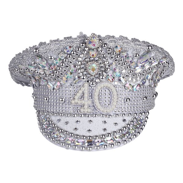 Paljettkeps 40 Silver med Pärlor One size