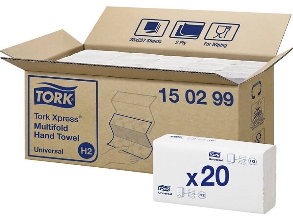 TORK Xpress Multifold H2, 2-Lagigt, Vitt - 20 X 237 Ark