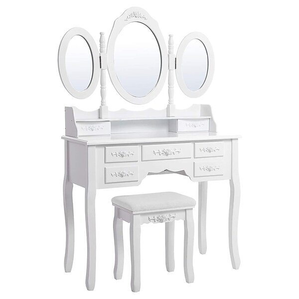 Vasagle 3 speglar med pall 7 lådor 2 avdelare RDT91W 145