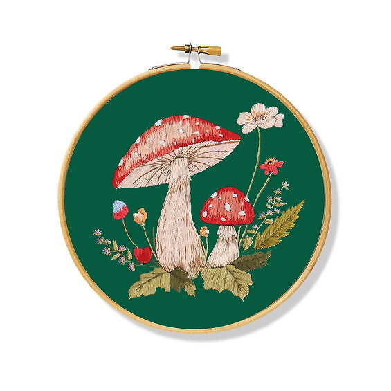 Panduro Hobby Broderikit red mushrooms Ø20 cm – allt för att brodera söta flugsvampar