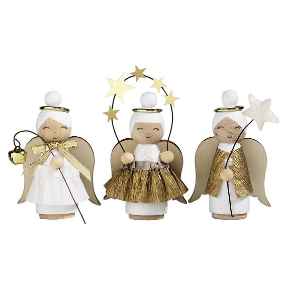 Panduro Hobby DIY-kit Angelic Choir – julpyssel med 3 vackra änglar av trä. L. 7,5 cm