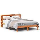 vidaXL Sängram med huvudgavel vaxbrun 135x190 cm massiv furu