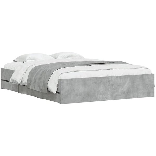 vidaXL Sängram med lådor betonggrå 140x190 cm konstruerat trä