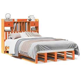 vidaXL Säng med bokhylla utan madrass vaxbrun 135x190cm massiv furu