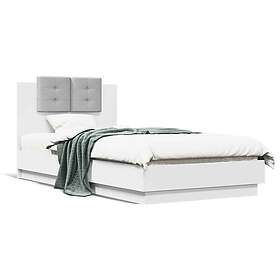 vidaXL Sängram med huvudgavel och LEDs vit 75x190 cm