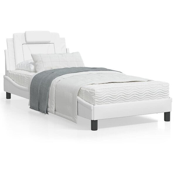vidaXL Sängram med LED-belysning vit 90x200 cm konstläder
