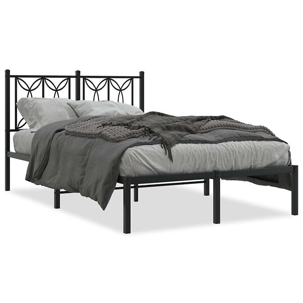 vidaXL Sängram med huvudgavel metall svart 120x190 cm