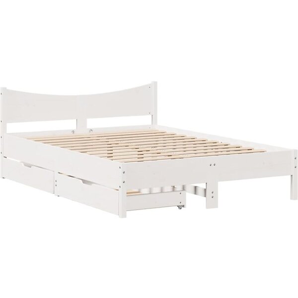 vidaXL Sängram med lådor vit 120x190 cm massiv furu