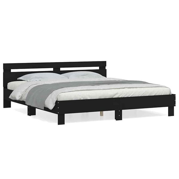 vidaXL Sängram med huvudgavel svart 180x200 cm konstruerat trä