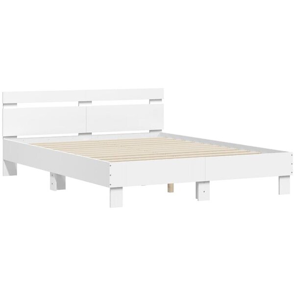 vidaXL Sängram med huvudgavel och LED vit 150x200 cm
