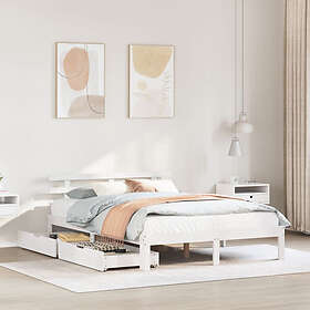 vidaXL Sängram med lådor vit 160x200 cm massiv furu