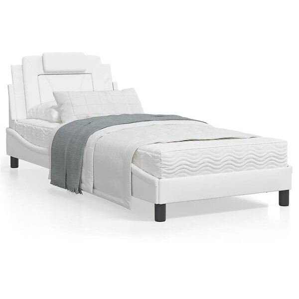 vidaXL Sängram med LED-belysning vit 90x190 cm konstläder