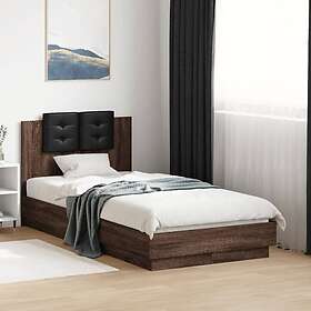 vidaXL Sängram med LEDs brun ek 100x200 cm konstruerad trä