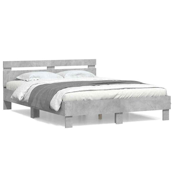 vidaXL Sängram med huvudgavel betonggrå 140x200 cm konstruerat trä