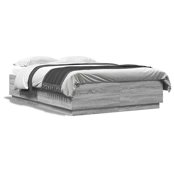 vidaXL Sängram med LEDs grå sonoma 140x200 cm konstruerad trä