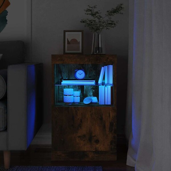vidaXL Skænk med LED-belysning Røget eg 41x37x67cm