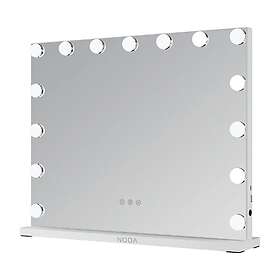 NOOA Glam Hollywood er en større spejl med målene 120x80 cm, hvilket giver et mere bredt overblik sammenlignet med Bright Beauty Vanity Namira, som måler 58x43 cm. Begge spejle har indbygget belysning, men NOOA Glam Hollywood tilbyder ekstra forstørrelse, hvilket kan være en fordel ved detaljeret make-up arbejde. Begge modeller har et stilrent, hvidt design, der passer godt ind i de fleste hjem. Hvis plads og kontrakt er vigtigt, er Bright Beauty et kompakt og funktionelt valg. Til gengæld passer NOOA Glam Hollywood bedre til brugere, der ønsker større spejlflade og forstørrelsesfunktioner til mere præcis anvendelse.