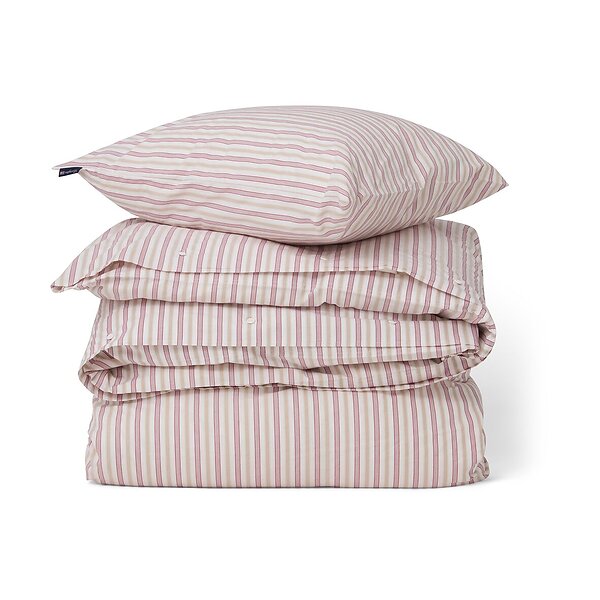 Lexington Dynebetræk Sæt Dobby stribet bomuldspoplin Rød-beige-hvid
