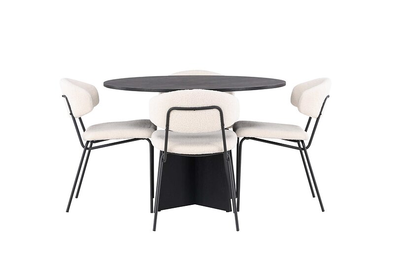 Venture Design Bootcut Round & Chico matgrupp Vit/svart 4 stolar & bord 110 cm