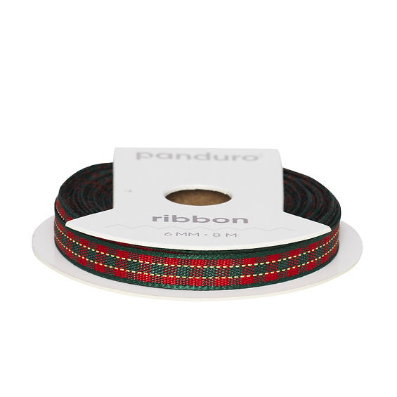 Panduro Hobby Dekorband i klassiskt grön-rödrutigt mönster 8 m långt 6 mm brett