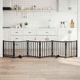 vidaXL Hundgrind med dörr vikbar 6 paneler svart 300cm massivt granträ