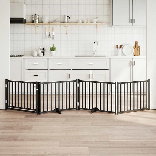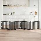 vidaXL Hundgrind med dörr vikbar 4 paneler svart 320cm massivt granträ