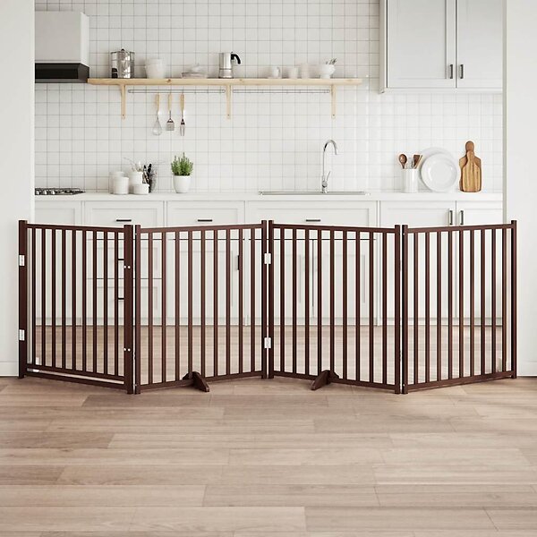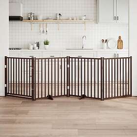 vidaXL Hundgrind med dörr vikbar 4 paneler brun 320 cm massivt granträ