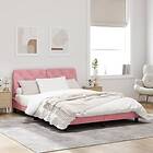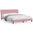 vidaXL Sängram med LED-belysning rosa 160x200 cm sammet