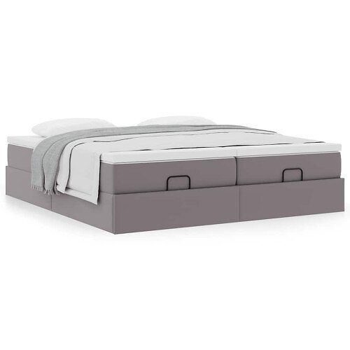 vidaXL Ottoman sängram med madrasser grå 180x200 cm konstläder