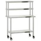 vidaXL Arbejdsbord med øvre hylde 110x55x150cm rustfrit stål