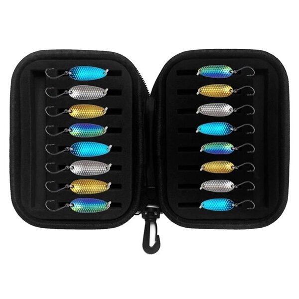 MTK 16 st 1,5g 2,5g 3,5g 5g Öring Fiske Bete Spinner Drag med förvaringsväska