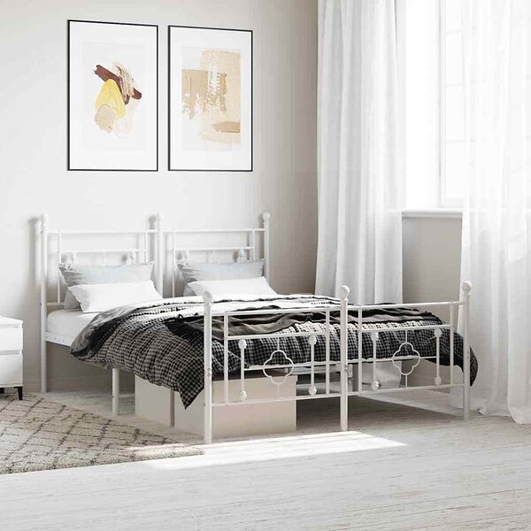 vidaXL Sängram med huvudgavel och fotgavel vit metall 140x200 cm