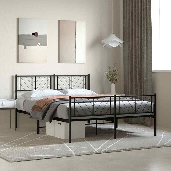 vidaXL Sängram med huvudgavel och fotgavel svart metall 135x190 cm